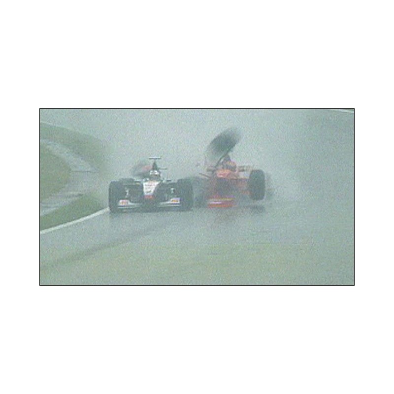 David COULTHARD McLaren MP4/17 rear wing from the famous 1998 Belgium GP shunt with Michael Schumacher. This is the right item with a real race history. At the 1998 Belgian Grand Prix, a leading Michael SCHUMACHER crashed into the back of David Coulthard's McLaren in torrential rain at Spa-Francorchamps, destroying the rear end of Coulthards McLaren and the front-right wheel of the Ferrari !
