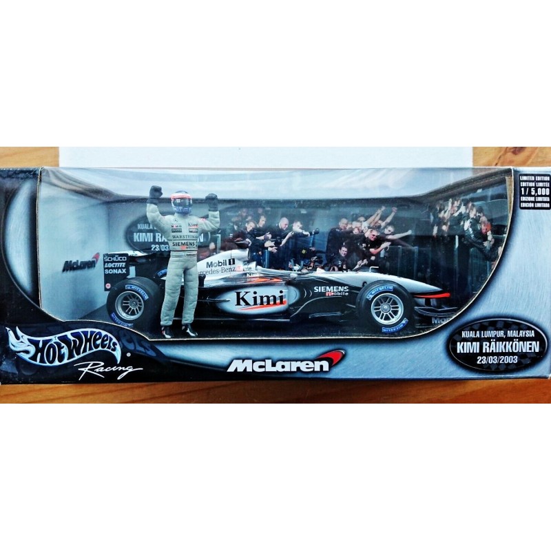 HOTWHEELS échelle 1/18: McLaren MP4-17D, 1ère victoire de Kimi RÄIKKÖNEN en F1 lors du GP de Malaisie 2003. Série limitée 5000pcs. HOTWHEELS 2583AZ