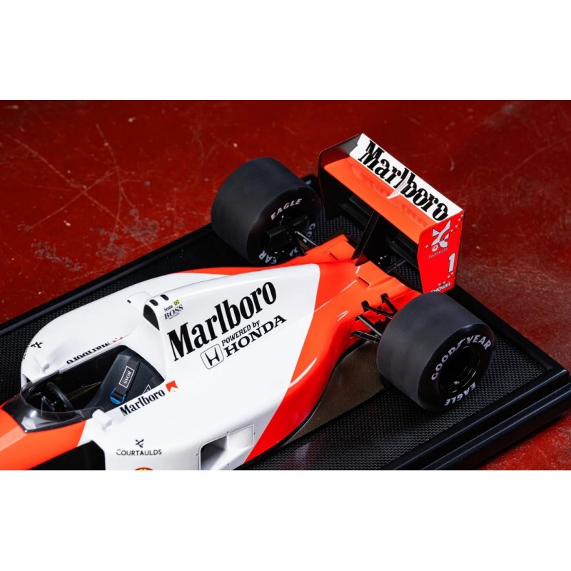 AMALGAM échelle 1/8ème : McLaren MP4/6 Ayrton Senna, GP du Japon 1991. Série limitée de 199 pcs, avec Certificat d'authenticité et avec coffret display. Notre miniature est livrée avec la publicité MARLBORO !